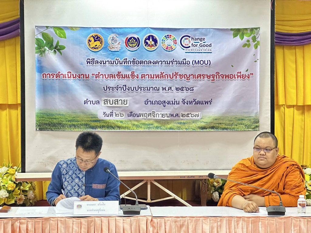 26 พ.ย พ.ศ.2567 เวลา 13.30น.เป็นต้นไป โดยการอำนวยการของ พ.ต.อ.พงษ์พีระ การะเกตุ ผกก.สภ.สูงเม่น มอบหมายให้ พ.ต.ท.มานพ ใจอุ่น รองผกก.ปฯ พร้อมด้วย คณะกรรมการ กต.ตร. เข้าร่วมประชุม คณะทำงานขับเคลื่อนการดำเนินงานตำบลเข้มแข็ง ตามหลักปรัชญาของเศรษฐกิจพอเพียง อำเภอสูงเม่น ซึ่งได้คัดเลือกตำบลสบสาย เป็นเป้าหมาย ดำเนินการในปีงบประมาณ 2568 โดยมี นายนคร สายยืด นายอำเภอสูงเม่น เป็นประธานการประชุม และมี หน.ส่วน ผู้แทน นายก อบต.สบสาย กำนัน ผู้ใหญ่บ้าน ผชฯ ฯลฯ ร่วมประชุม โดยพร้อมเพียงกัน และร่วม เป็นสักขีพยาน การลงนามบันทึกข้อตกลงความร่วมมือ(MOU) ณ ห้องประชุม อบต.สบสาย