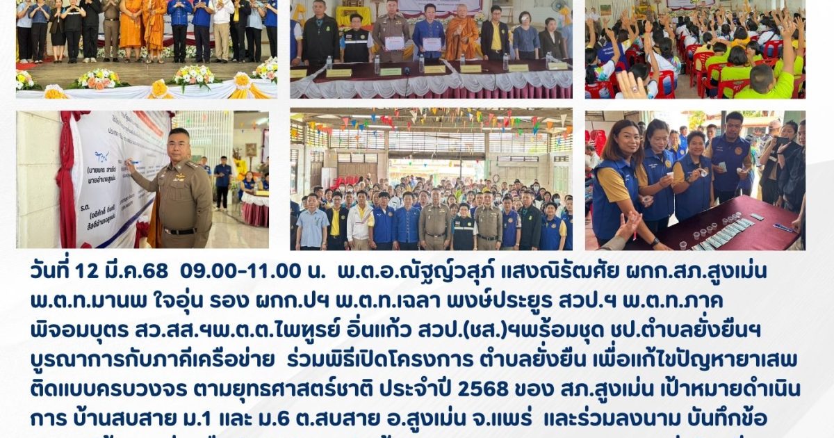 พิธีเปิดโครงการ ตำบลยั่งยืน เพื่อเเก้ไขปัญหายาเสพติดแบบครบวงจร ตามยุทธศาสตร์ชาติ ประจำปี 2568