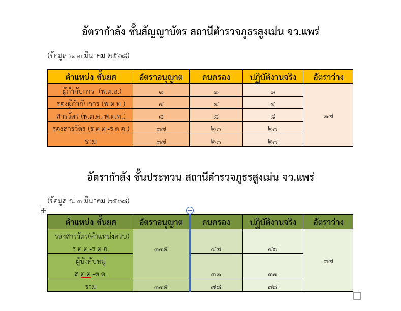 อัตรากำลังพล สภ.สูงเม่น จว.แพร่