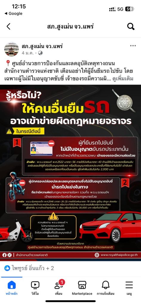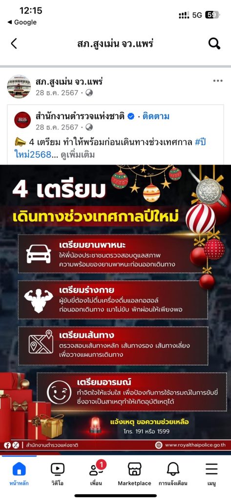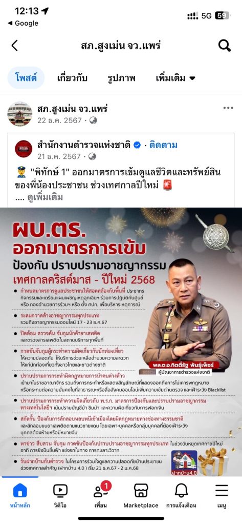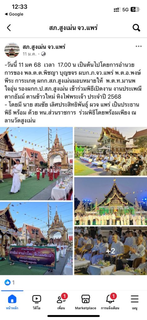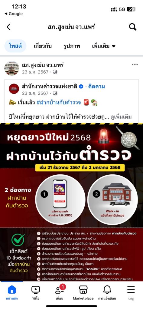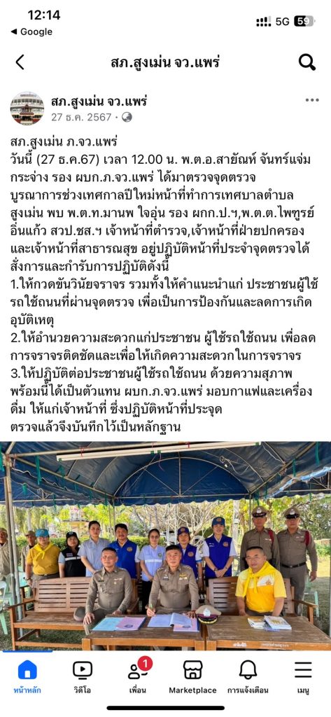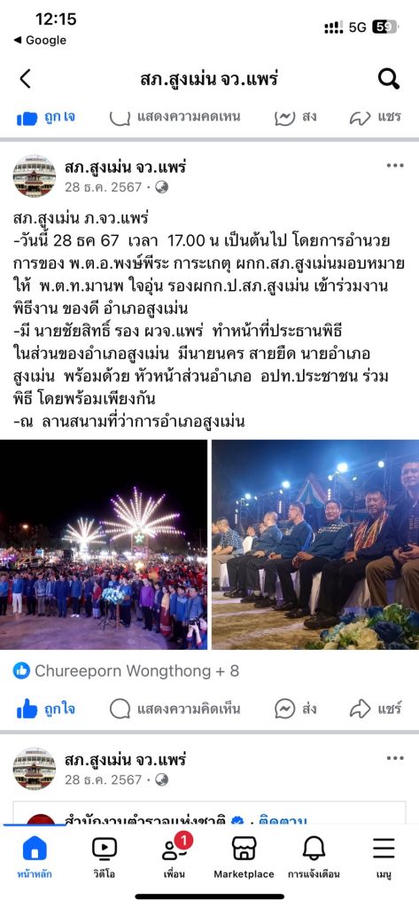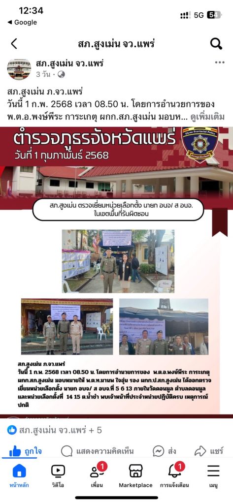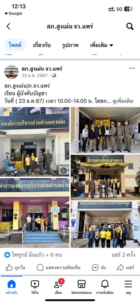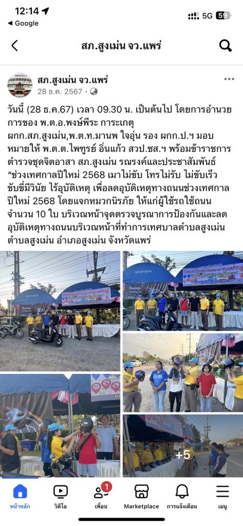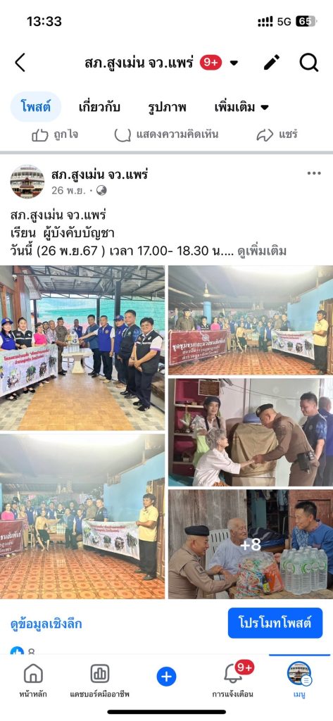 การประชาสัมพันธ์ข่าวสารทาง Facebook สภ.สูงเม่น จว.แพร่