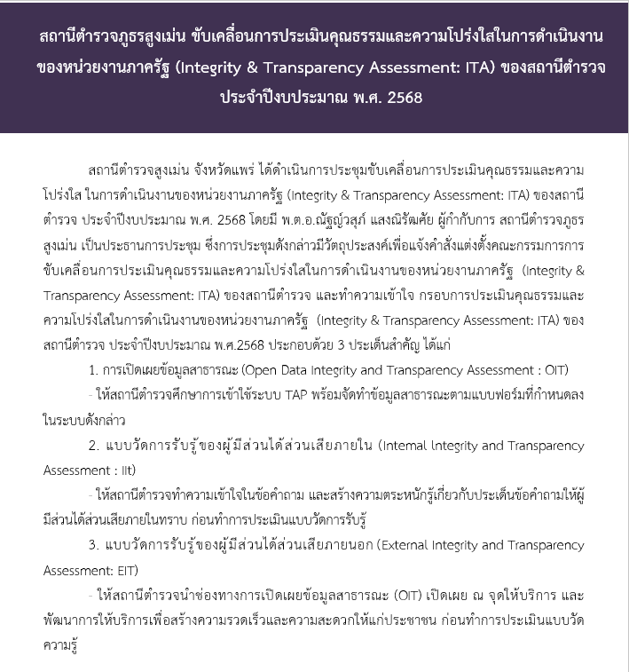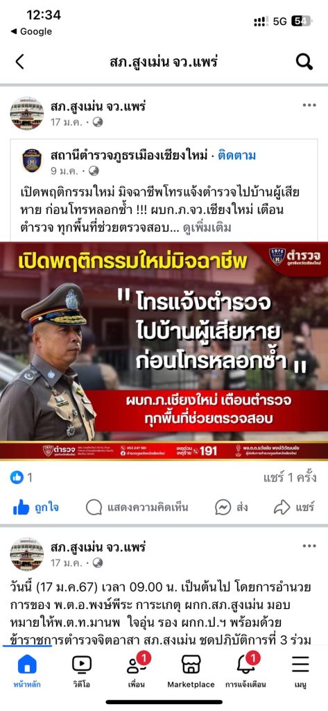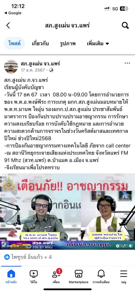 ประชาสัมพันธ์ข้อมูลข่าวสาร และเผยแพร่สื่อสังคมออนไลน์ของสถานีตำรวจ สภ.สูงเม่น จว.แพร่