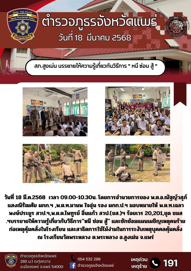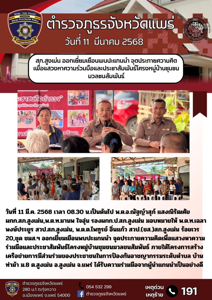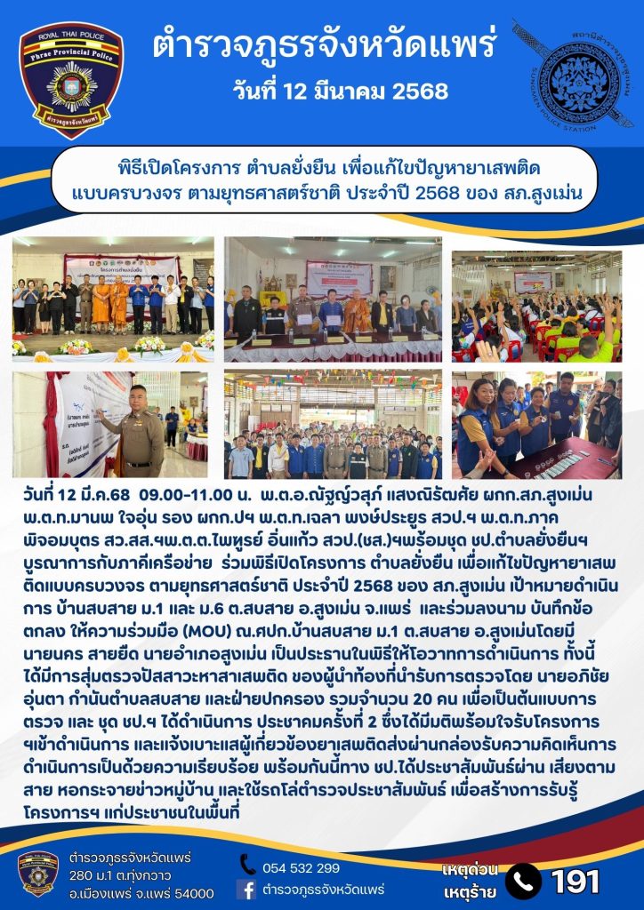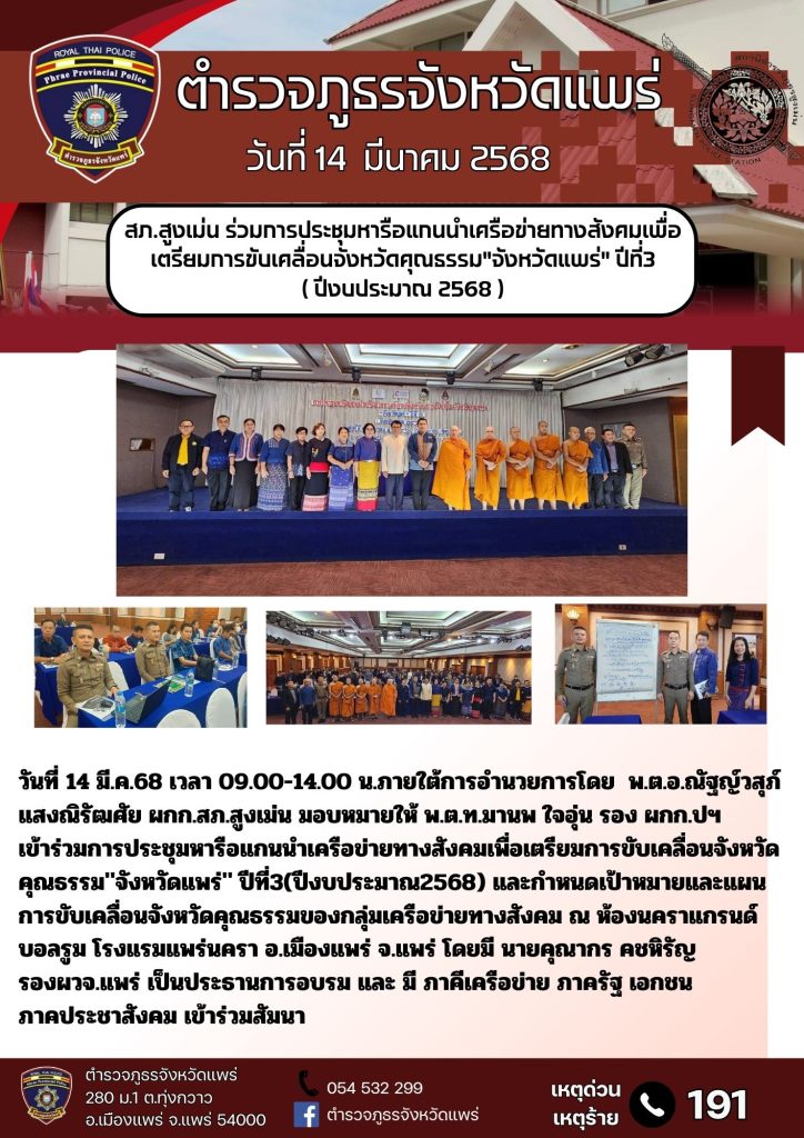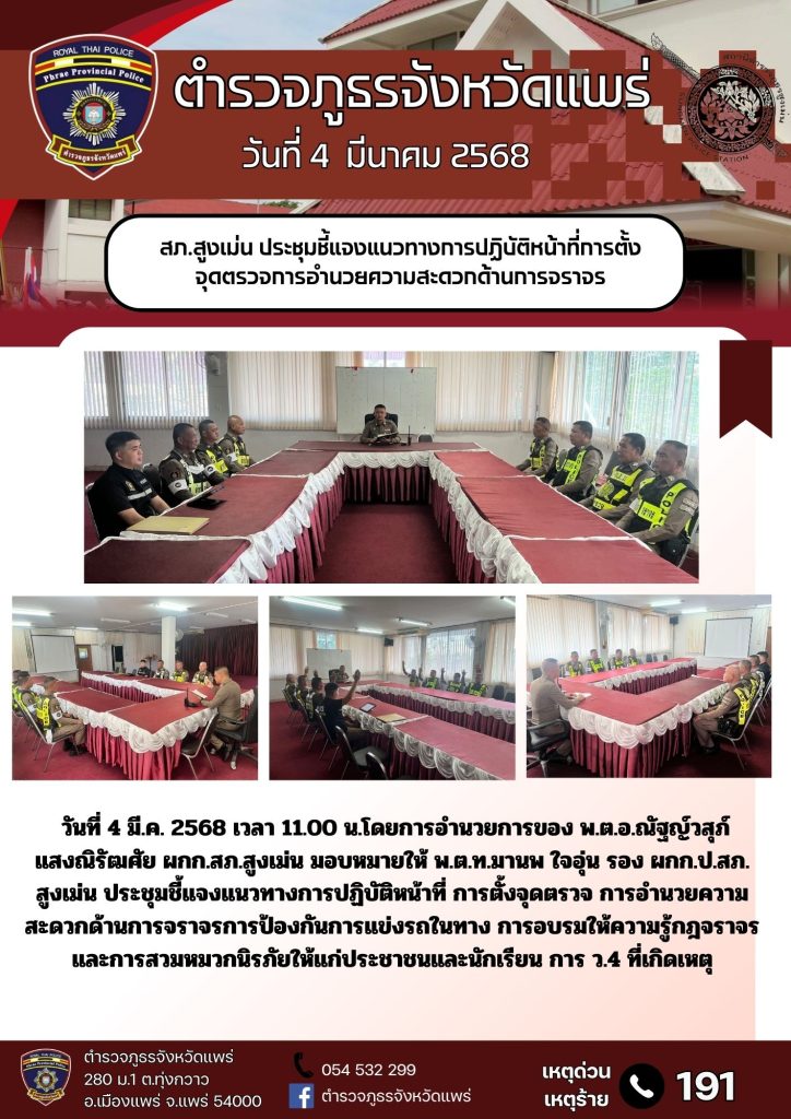 วันที่ 31 มี.ค.68 เวลา 10.30 – 12.00 น. พ.ต.อ.ณัฐญ์วสุภ์ แสงณิรัฒศัยผกก.สภ.สูงเม่น,พ.ต.ท.มานพ ใจอุ่น รอง ผกก.ป.ฯ ,พ.ต.ท.ยรรยงค์ สุริยะมณีรอง ผกก.สส.ฯ, เจ้าหน้าที่ที่เกี่ยวข้องและคณะกรรมการ กต.ตร.สภ.สูงเม่น โดยมีนายสำราญ กองโกย ประธานคณะกรรมการ กต.ตร.สภ.สูงเม่น ได้จัดการประชุมคณะกรรมการ กต.ตร.สภ.สูงเม่น ครั้งที่ 1/2568 ณ ห้องประชุมชั้น 2 สภ.สูงเม่น เพื่อรับมอบนโยบายและแจ้งเกี่ยวกับการปฏิบัติงานของเจ้าหน้าที่ตำรวจประจำปีงบประมาณ 2568 และแนะนำข้าราชการตำรวจที่ได้รับการแต่งตั้งประจำ สภ.สูงเม่น ประจำปีงบประมาณ 2568 รวมถึงหารือเกี่ยวกับการป้องกันอุบัติเหตุบนท้องถนนช่วงเทศกาลสงกรานต์ 2568 ,การป้องกันปราบปรามยาเสพติด,การประเมินคุณธรรมความโปร่งใสในการดำเนินงานของหน่วยงานภาครัฐ (ITA) ประจำปีงบประมาณ 2568 และอาชญากรรมต่างๆในพื้นที่อำเภอสูงเม่น
